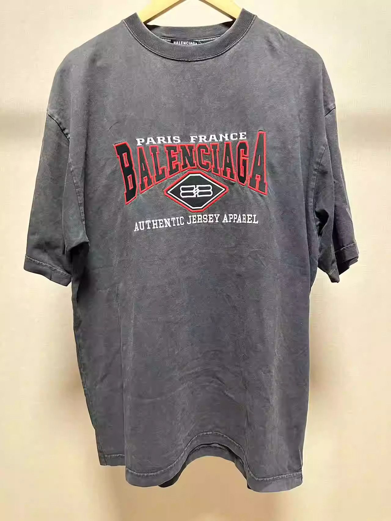 Balenciaga Washed Black Letter Embroidery Short Sleeve