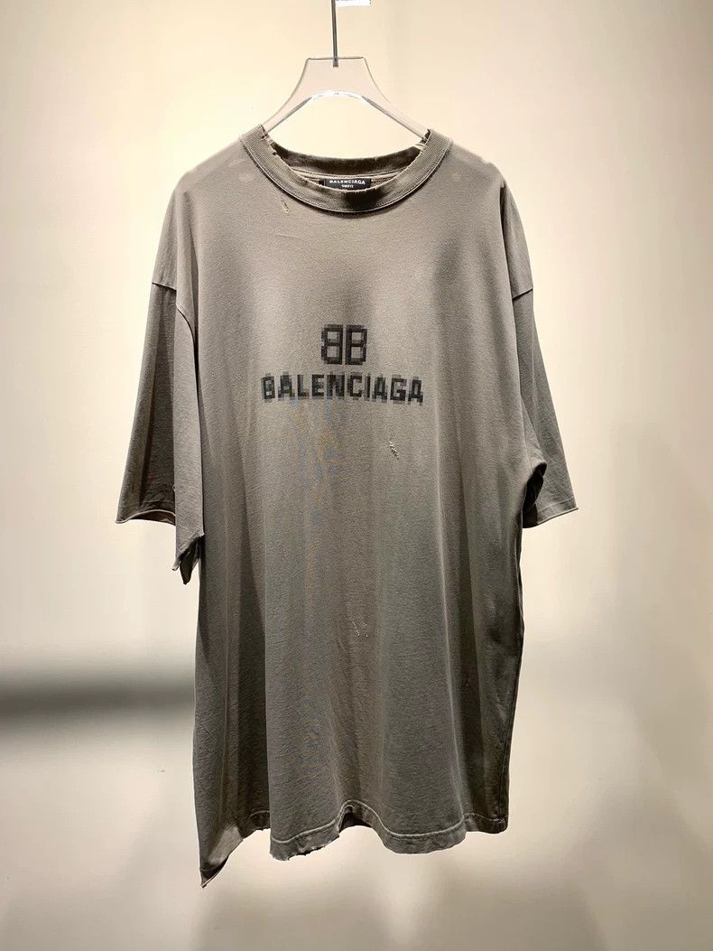 Balenciaga Mosaic Blurred Logo Ripped Distressed Short-Sle