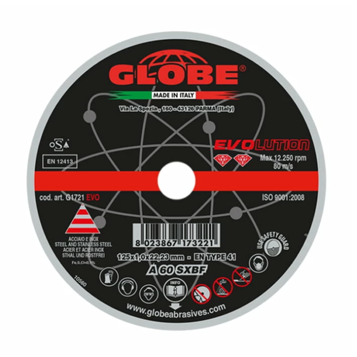 Globe G1721-Evo Cut-off wheel Flat 125×1,0×22,2mm A60SX EVO stainless steel 25 pieces